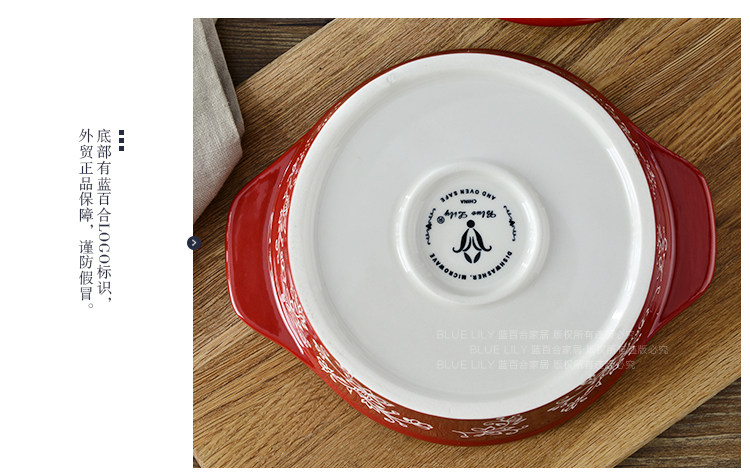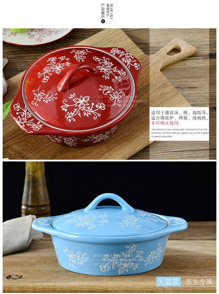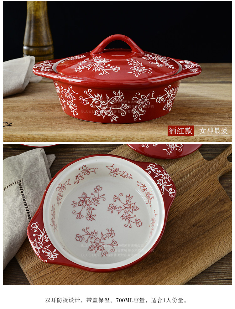 创意陶瓷西餐焗饭烤盘 双耳带盖小萌锅 纯手工制作