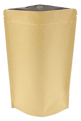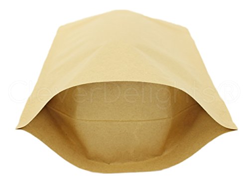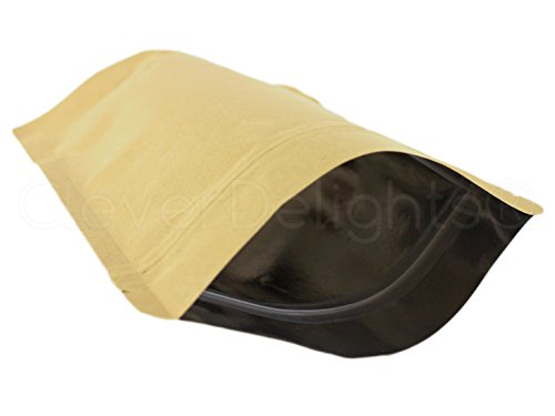 50 Pack - CleverDelights Kraft Stand-Up Pouches - 8oz - 6" x 9" x 3" - Foil Lined with Zipper Lock