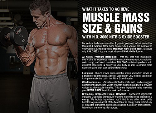 N.O. 3000 - Nitric oxide booster for lean muscle mass and muscle development - N.O. 3000 is unique nitric oxide supplement for lean muscle mass, blood flow, energy, and pumps. With the addition of grapeseed extract, b-vitamins, l-arginine, l-citrulline malate, and l-nor valine - we've formulated this nitric oxide booster like no other! - with Vitamorph Labs - you'll receive many great promotional discounts try it today at a great price - one of the few vegetarian friendly nitric oxide boosters available.Feature