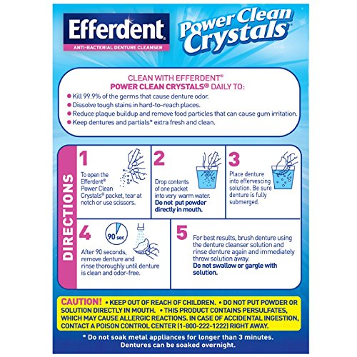 Studio : Medtech Products Publisher : Medtech Products Binding : Misc. Product Description Power Clean Crystals reduce plaque buildup, remove food particles that can cause gum irritation and is able to kill 99.9% of odor-causing bacteria in just 90 seconds! In addition, Efferdent Power Clean Crystals Denture Cleanser dissolves fast for a quick and efficient clean. Your smile will speak for itself when it comes to using Power Clean Crystals. 0