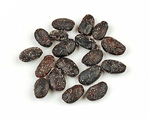 Fermented black beans are 1 cm in length and have a soft, firm texture.