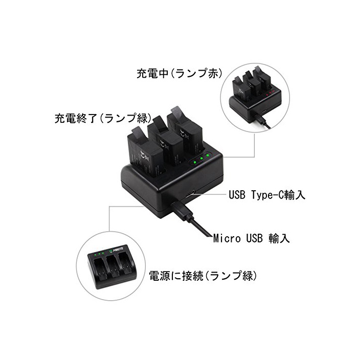 【충전기는 각600mA출력이 가능】충전기는 3 개동시에서도 각600mA출력이 가능합니다.Gopro HERO5 배터리 만 충전 가능.