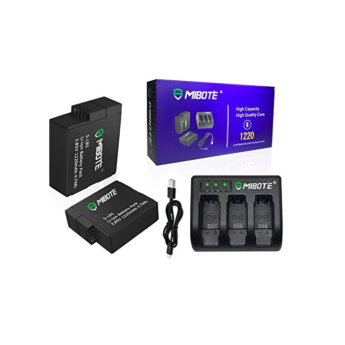 MIBOTE GoPro HERO5 교환용 배터리 2개 3포토USB충전기 최신 시스템v01.55사용 가능 1220mAh 충전식 배터리 대응 기종 GoPro HERO5 Black 부