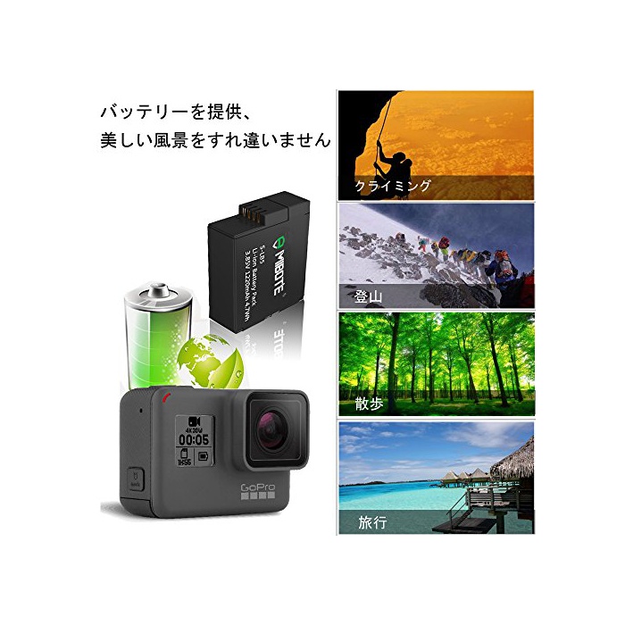 원본상품명: MIBOTE GoPro HERO5 交換用バッテリ 2個 3ポトUSB充電器 最新システムv01.55使用可能 1220mAh 充電式バッテリ 機種 GoPro HERO5 Black ブ
