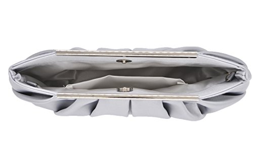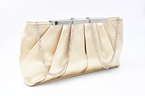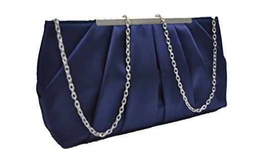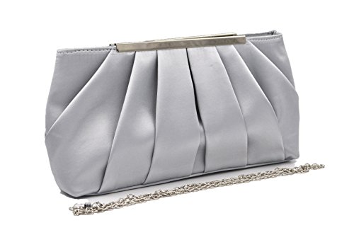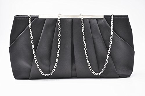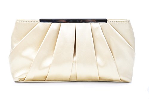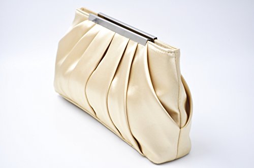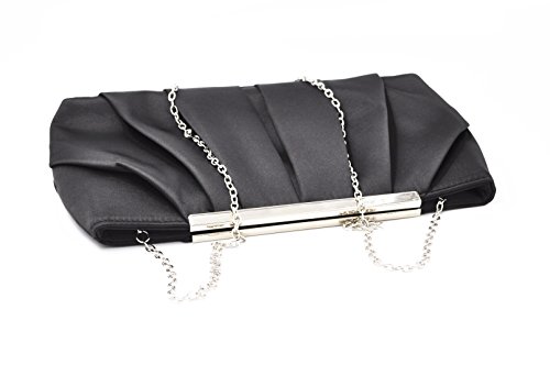 Product Description Feel classy in the in the Nodykka evening clutch cross body shoulder bags clutches for women. This stylish and cool single strap crossbody handbags purse is made of high quality and soft satin material with pleated and metal detail. It features one roomy main compartment to fit your essentials for daily, weekend, formal, wedding or travel use, like cell phone, passport, keys, cosmetic bag, sunglasses, pen, lipstick, glove, card holder, coin pouch etc. Detail Color: Black, Apricot, Darkblue, Silver Size: 11.4*5.9*2.4 inch Best gifts for yourself,your beloved, wife, mother, sister, girlfirend, daughter,friends, etc/For birthday, Christmas, saint valentine, mother's day or new year present. If for any reason, you are not satisfied with your order, please do not hesitate to contact Nodykka, we will try our best to find a solution for you! Please note, the hardware color and interior lining may differ from the color shown in the photo. 0