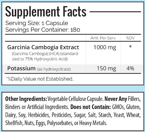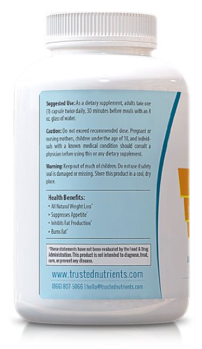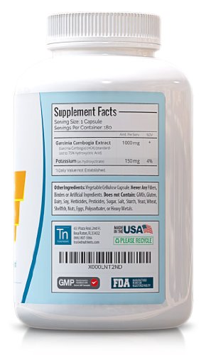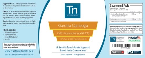 -. Title : Trusted Nutrients 75% HCA Garcinia Cambogia Extract: No Calcium, Non GMO, 1000mg Per Cap, 180 Count