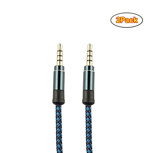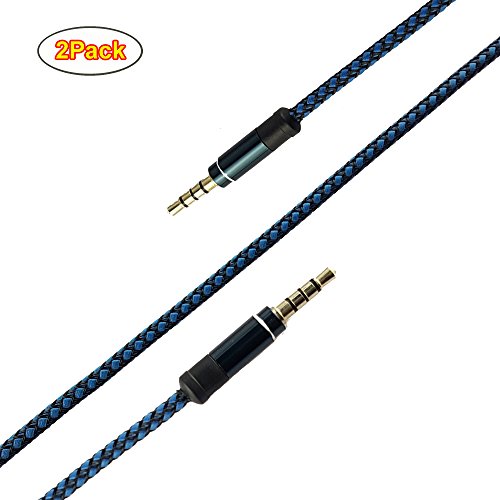 Seadream 2Pack 1.5M 5 Feet Male to Male 3.5mm AUX Cable,Universal Nylon Braid Fiber Shoe Lace Auxiliary Audio Stereo Cable Cord Home/Car Stereos, Gold Plated Connectors (2Pack blue)