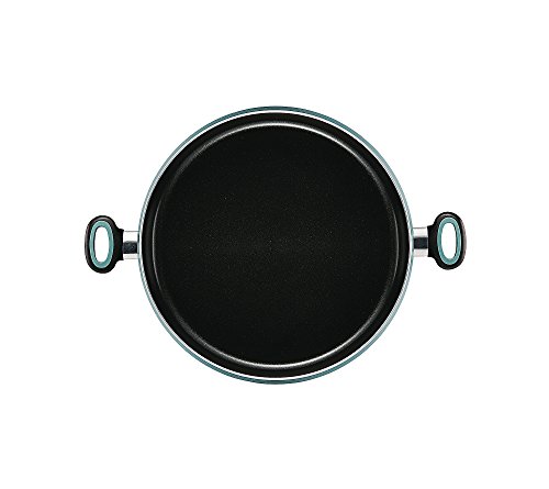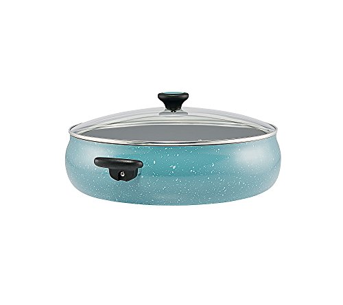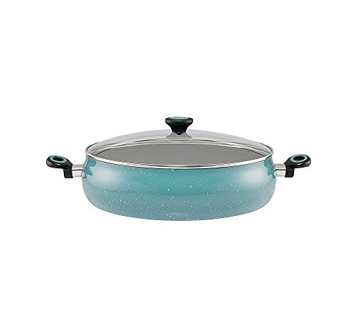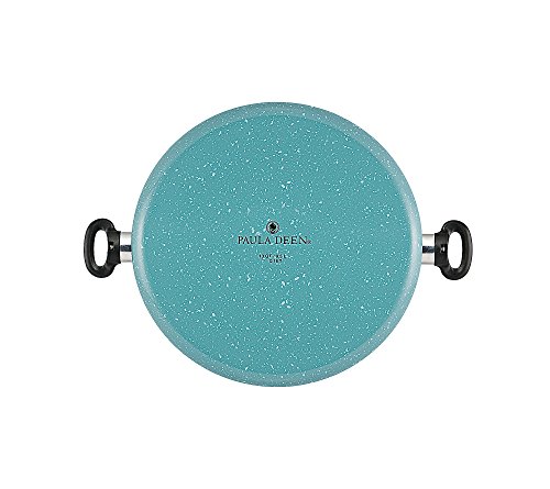 One-dish and large-batch cooking convenience gets upsized in style with the dishwasher-safe Paula Deen(r) Riverbend Aluminum Nonstick 10-Quart Covered Family Gathering Pan. Even occasional cooks can appreciate this large-capacity pan from Paula Deen(r). Wide and big enough to hold 10 quarts, the covered pan is ideal for pulling together your favorite one-dish pasta dinner, sauteing a sizable batch of healthy veggies, or taking a tamale pie from stovetop to oven. The dishwasher-safe aluminum construction heats quickly and evenly for better cooking control whatever the recipe. And the interior features long-lasting, top-quality nonstick, so foods release in a jiffy and cleanup is a cinch. Gather family and friends around the foods you love and love to cook with this tabletop-suitable covered pan from Paula Deen(r). Stain-resistant speckled porcelain exterior color inspired by classic enamelware and two comfortable, color-coodinating side handles make moving and serving from the pan easy as chicken pot pie. Suitable for all stovetops except induction, the pan is conveniently oven safe to 350 DegreeF, making it easy to tackle Paula's delicious stove-to-oven recipes. Best of all, durable, stylish Paula Deen(r) Riverbend Cookware makes mealmaking easier and conveniently leaves cleanup to the dishwasher. Explore the wide world of delicious, flavorful big-batch cooking with the colorful, charming dishwasher-safe Paula Deen(r) Riverbend Aluminum Nonstick 10-Quart Covered Family Gathering Pan.Feature