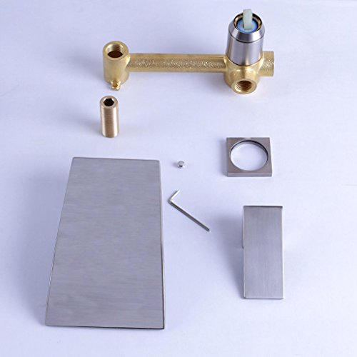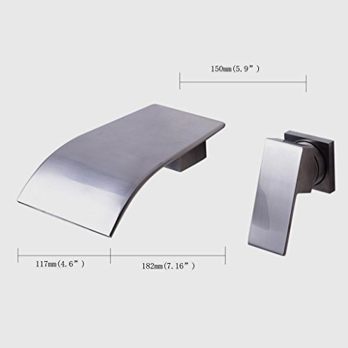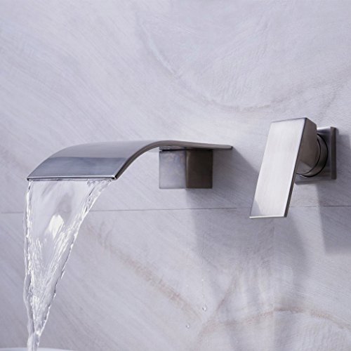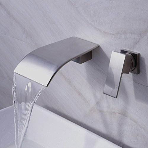 Wall Mount Two Holes Bathroom Sink Faucet Single Handle Vessel Waterfall Faucets Widespread Brushed Nickel