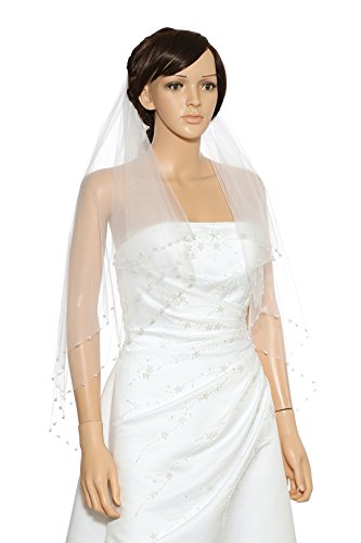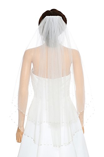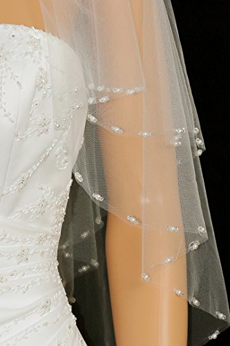 (Venus Jewelry)/Accessories/Scarves/DIRECT FROM USA/2T 2 Tier Crystal Pearl Beaded Edge Bridal Wedding Veil - Ivory Fingertip Length 36" V345