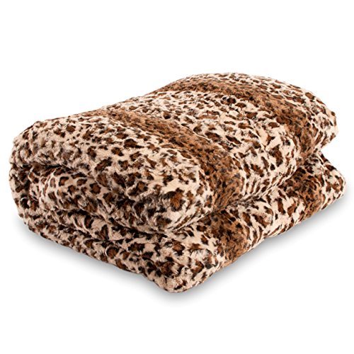 Bellahome Safari Faux Fur Plush Throw Blanket Comforter, Leopard (74'' X 86'' Queen) AQ605