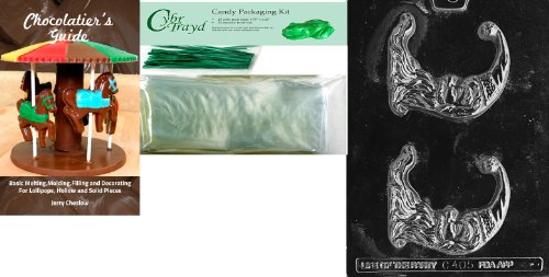 Cybrtrayd Half Moon Santa Chocolate Mold with Chocolatier's Bundle of 25 Cello Bags, 25 Green Twist Ties and Chocolatier's Guide