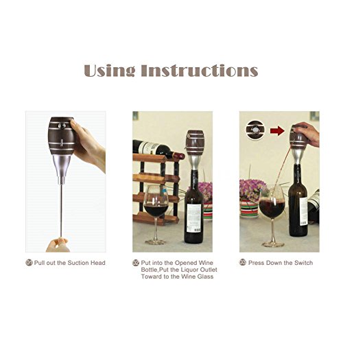 Studio : EVERTOP Publisher : EVERTOP Binding : Kitchen Product Description From EVERTOP: EVERTOP is a manufacturer producing high quality products and providing good customer service to our customers worldwide. Our product covers many household categories like cordless electric floor cleaner, window cleaner, kitchen bathroom cleaner and more. We have successfully launched our products in over 30 countries. Product Features: Best tool for picnic or outdoor to have wine's full falvor in seconds Persistently pressing the switch for extraction. Food safety standard stainless steel telescopic rod in length to extract the drinks Parameter: Color:Color: Brown Model: FD-EDP-A Material: plastic Stainless Steel Battery: 4 X 1.5 V AAA Batteries (NOT Included) Flow: more than 700 ml /min Power: 3.5 W Decanting Wine Flow: 1oz/3s Item Weight: Approx. 205.6 g Item Size: Approx. 4.3 X 3.5 X10.4 in (L XWXH) Package Weight: Approx. 368 g Package Size: Approx. 11.6 X 4.5 X 3.3 in (L XW X H) Package Contents: 1 x wine decanter 1 x User manual Tips: Any problem please feel free to contact us before you leave the negative review or feedback.We will try our best to serve you .We hope you have the 100% satisfaction shopping experience from us 0