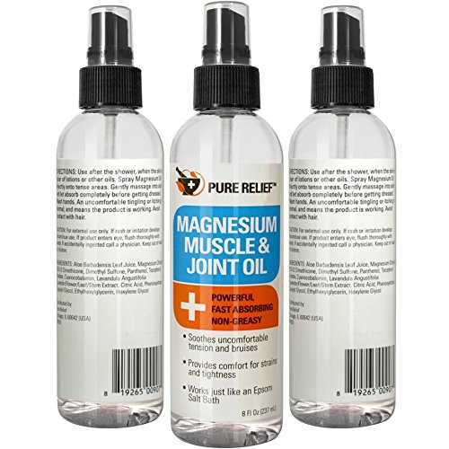 Pure Magnesium oil made with highly concentrated organic magnesium oil with aloe vera and lavender helps with joint pain, muscle cramps, fibromyalgia, backaches, sleep issues, restless leg and more. Known to be the magic mineral, natural magnesium oil helps with relieving pain and is a safe alternative to addicting pills. This fast absorbing and non-greasy formula moisturizes your skin and is non-irritating so it won't itch or burn like other magnesium oil products.