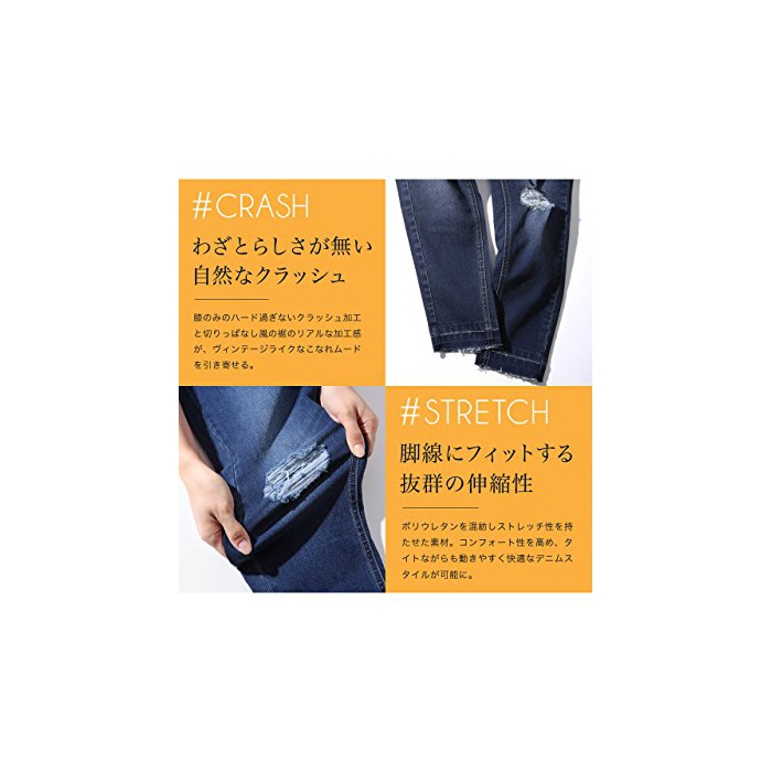 남자의 wardrobe에 빠뜨리지 않는 데님 팬츠.깨끗함인 실루엣과 스트레스 프리인 입어 기분으로 여러 해 지지를 받고 있는 러 쉘의 스키니 데님 팬츠에 크래쉬 가공을 한 트렌드감 전개 1벌이 마침내 완성.리얼한 크래쉬 가공이나 옷자락의 디 티《루》는 최근 키워드 이 되고 있는다「숙련되어 느낌」를 간단하게 연출해 준다. 「고의로다움이 없는 자연스러운 크래쉬」 무릎 만의 하드 불과한 크래쉬 가공과 접지않고 자른채로 처리풍의 옷자락의 리얼한 가공감이,빈티지 좋아하는 숙련되어 무드를 끌어당긴다. 「각선으로 피트 하는 발군의 신축성」 폴리《우》