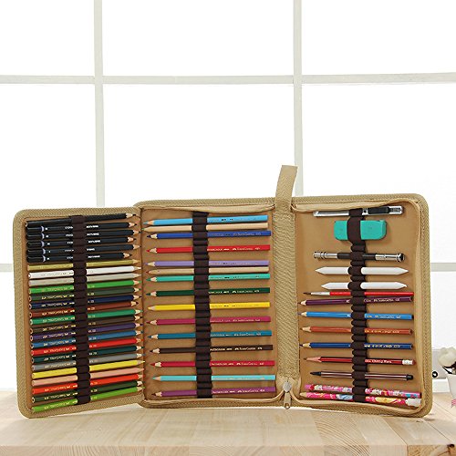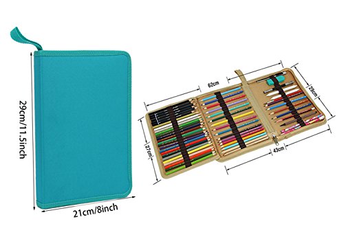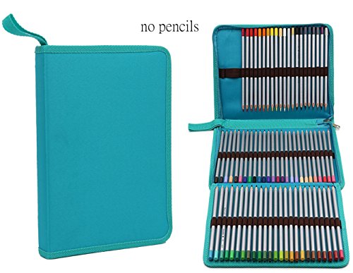 iSuperb Colored Pencil Case 72 Slots Canvas Portable Zipper Pen Bag Holder Storage for School Office Travel Art (Blue)