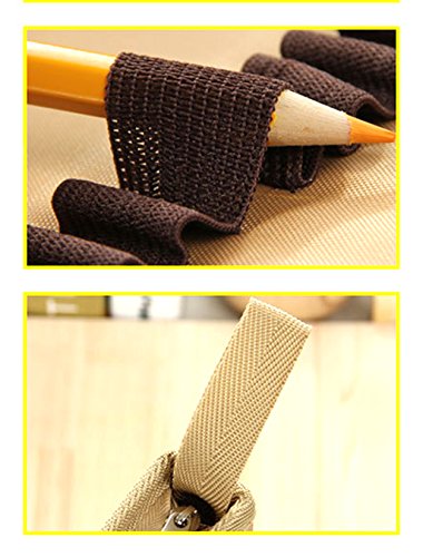 72 individual elastic slots for pencils or pens, and the pencils are held in place by a 0.75 inch strip of elastic that is sewn to the case to create places to slide the pencils into, and one spot that is larger and could hold an eraser or rule, etc.