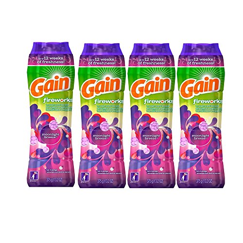 Studio : GAIN Publisher : GAIN Product Description Create explosions of scent in your washer with Gain Fireworks, Moonlight Breeze Scent, In-Wash Scent Booster. They let you pick just how much scent you enjoy. Shake as many scent beads as youd like into your washer drum before you start the wash, and then add your favorite Gain detergent. Toss in your clothes, and start the wash. Gain Fireworks dissolve in hot or cold water. Enjoy the smell of a job well done. 0