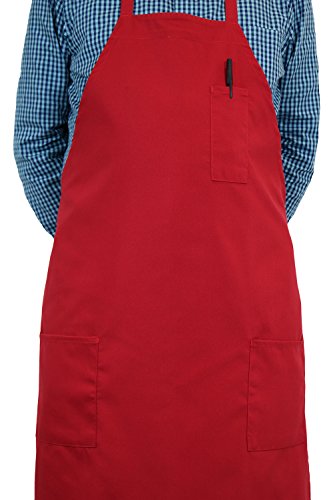 Sigmatex - Lanier Textiles Server Bistro Aprons 3 Pockets (1 Pencil and 2 Hand Pockets), Spun Polyester, Restaurant Quality, 29” x 34”, 2 Pack (Red)