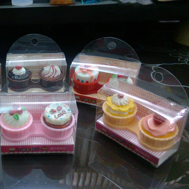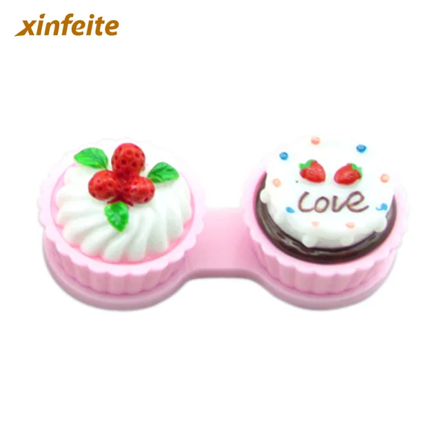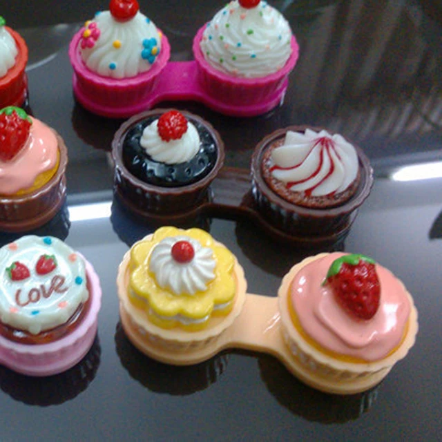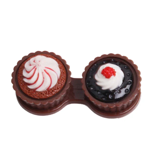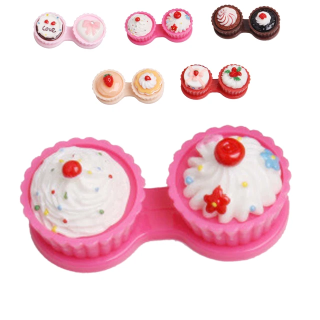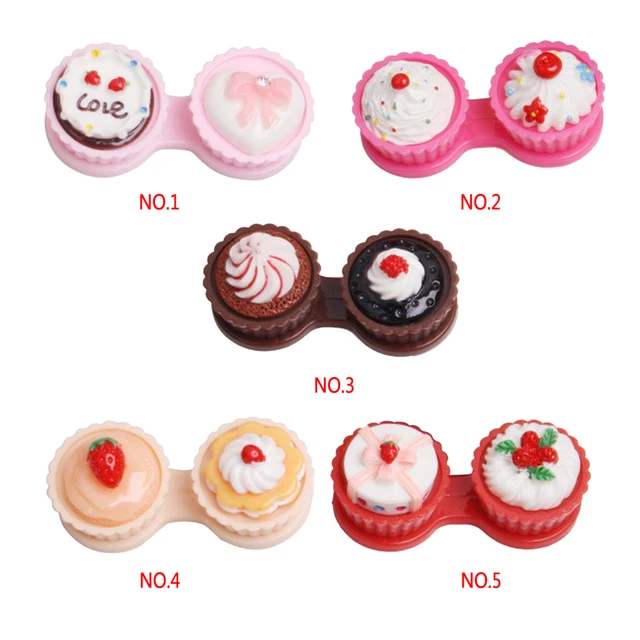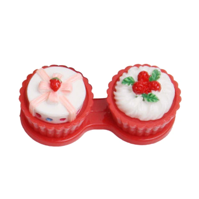 | [해외] 깨끗한 여행 만화 케이크 크림 모양 콘택트 렌즈 케이스 박스 세트 컨테이너 더블 상자 사랑스러운 |