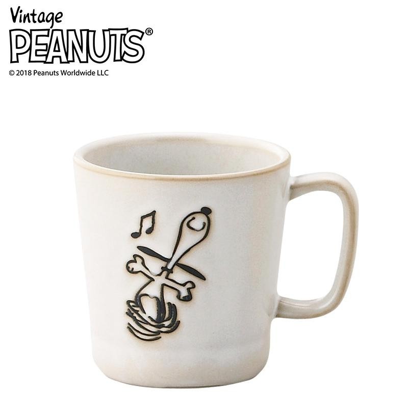 あたたかみのある素材にシンプルなイラストがかわいい♪ご自宅用はもちろん、ギフトにもオススメです。 製造国:日本 素材・材質:ストーン 商品サイズ:Φ85×H90mm 重量:250g 仕様:電子レンジ・食洗機使用可容量:300ml ※サプライヤー直送品 ご注文後3~4営業日後の出荷となります【商品名】SNOOPY スヌーピー ゼロ・ストーンシリーズ マグ ハッピーダンス SN51-11