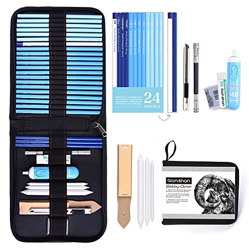 - WIDELY USE WITH SKETCH SET: With 24 pencils for drawing and highlighting, you will have everything you need to perfectly capture your ideas on paper. The portable kit bag that come with is perfect to use at home, school or in travel. And you have a way to truly express yourself and turn your imaginings into reality