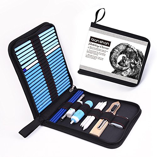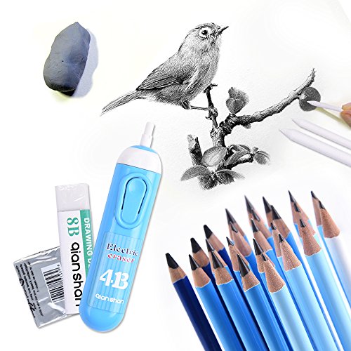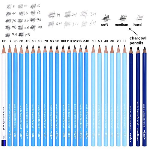 - STUDIO INCLUDES GRAPHITE & CHARCOAL PENCILS, STICKS AND TOOLS: 21 Sketching Pencils (6H-14B) & 3 Charcoal Pencils (Medium, Hard, Soft) For Professional Use, Carry Pencil Case, 8B & Kneaded sketch Erasers, Sandpaper Pad, 3 Stumps & Tortillions, Pencil Extender, Knife, 4B Electric Eraser (requires 2 AAA batteries not included)