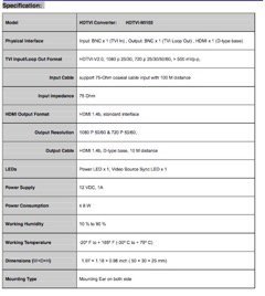 101AV HD TVI 1080p HDMI Converter convert HDTVI signal to HDMI effectively HD TVI Input (BNC) & Loop Out (BNC)