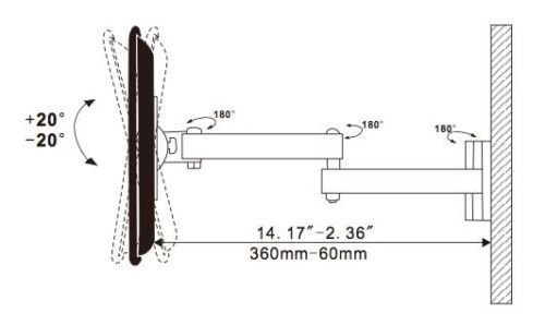 101AV Full Motion LCD LED Plasma TV monitor Wall Mount Bracket 12" 16" 19" 20" 21" 23" Tilt Swivel Hold up to 45lb (20Kg) VESA up to 100mm (W) x 100mm (H)
