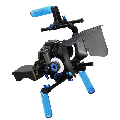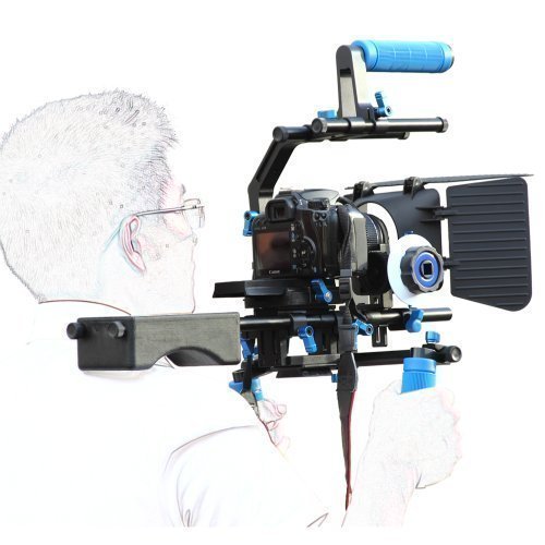 Koolertron DSLR Shoulder PAD Support Mount Rig+Hand Grip+Follow Focus+Matte Box+C Shape Support Cage+Top Handle 15mm Rod Rail Rig Video Movie Kit Combination For DV HDV HD Camcorder DSLR Canon