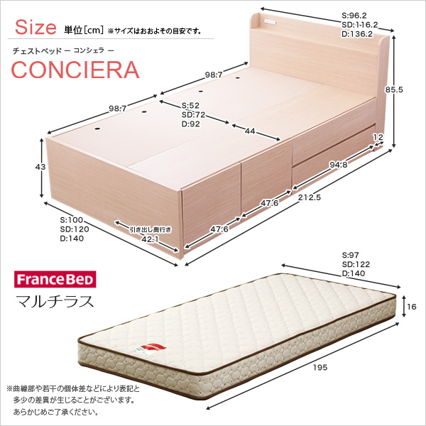 チェストベッド【コンシェラ-CONCIERA-(セミダブル)】(マルチラススーパースプリングマットレス付き)