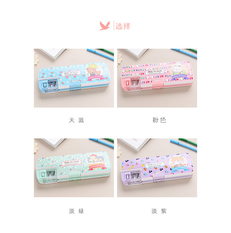 多功能卡通塑料文具盒大容量双层可爱儿童铅笔盒收纳学习用品文具