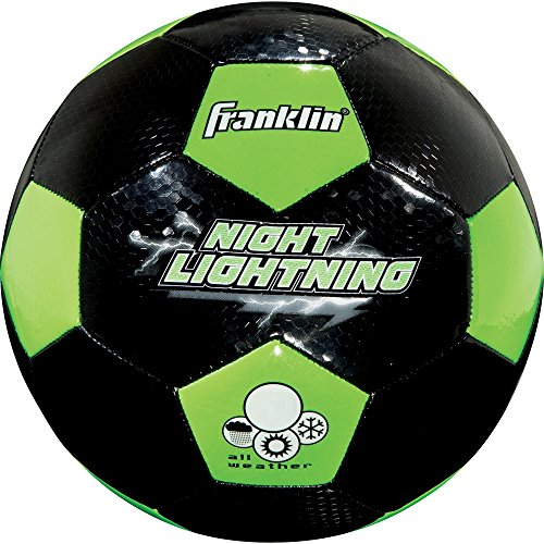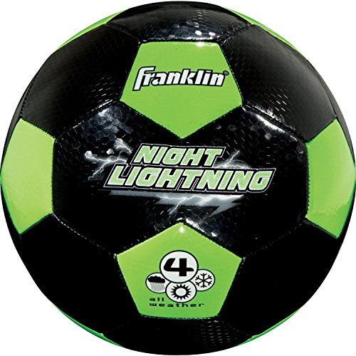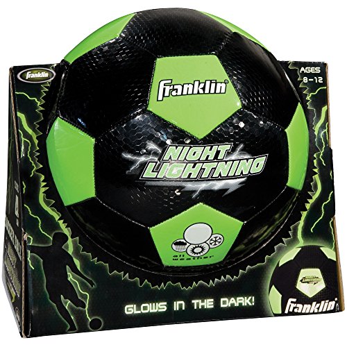 -. Binding : Sports -. Brand : Franklin -. Color : Gray -. Feature : High visibility neon green panels glow in the dark and enhance in-flight visuals / Cover combines glow in the dark PVC with high tack cage mesh for extra ball control / Vibrant Night Lightning panels enhance play / Long lasting air retention bladder / Fun for all ages -. Label : Franklin Sports -. Manufacturer : Franklin Sports -. Model : Sball -. MPN : 11524 -. PartNumber : 11524 -. ProductGroup : Sports -. ProductTypeName : SPORTING_GOODS -. Publisher : Franklin Sports -. ReleaseDate : 2011-08-26 -. Studio : Franklin Sports -. Title : Franklin Sports Night Lightning Soccer Ball