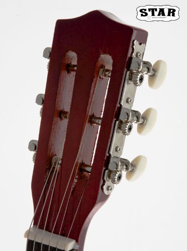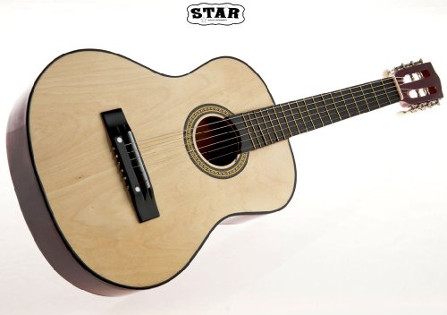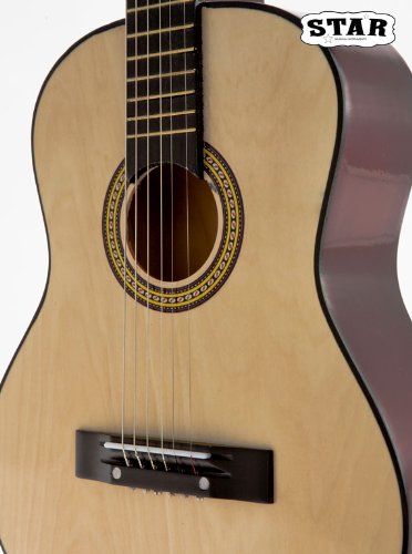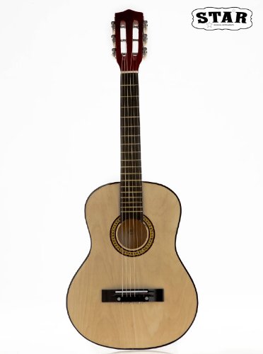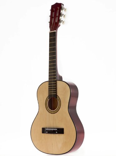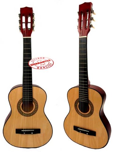 Studio : Sky Blue Telemarketing Inc. Publisher : Sky Blue Telemarketing Inc. Binding : Electronics Product Description This Children Acoustic Toy Guitar 31 inches (1/4 size) is a unique introduction to playing for the aspiring young musician. It is a functional Acoustic Guitar, which is great for pretend to play. It offers not only great sound and playability, but an affordable price which is attractive to many first-time players seeking a beginner guitar. This Guitar is a 31 inches in length and features a hardwood body, lindenwood binding, steel strings and 17 frets. Please note that this Guitar does NOT come tuned. To tune the Guitar, we recommend tightening the tuning knobs using a guitar tuner. This guitar is everything your child needs to get started playing. This 31 inches Acoustic Guitar makes a great gift for kids and is a great value for the money! 0