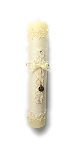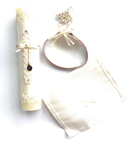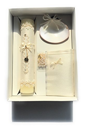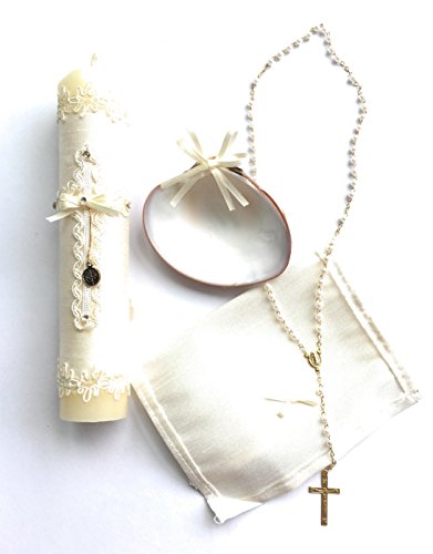 Handmade Catholic Baptism Kit including Rosary, Towel, Candle and Shell Kit De Bautizo Religious Gift (Beige)
