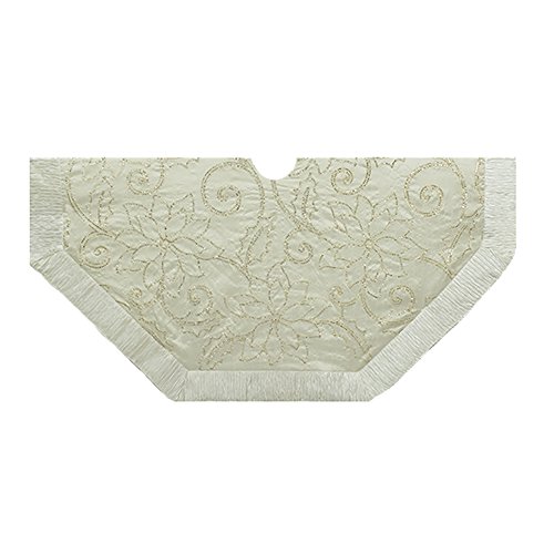 This 48-Inch ivory and gold scroll tree skirt from Kurt Adler is a beautiful, festive way to complete the decor of your Christmas tree. Its eight-sided 48-Inch design is ivory in color and is accented by delicate gold poinsettias and scroll designs