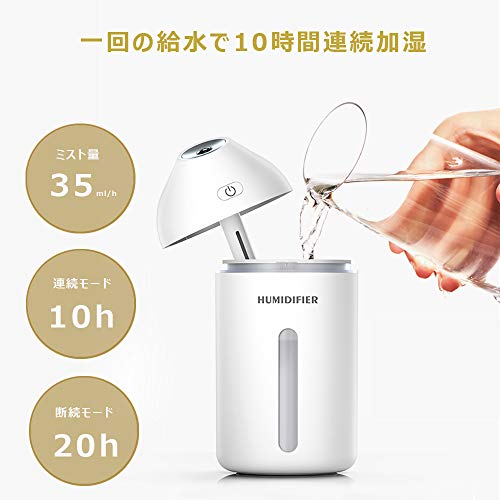 コンパクトのサイズでも10時間連続運転可能。面倒な水を替える手間も省けます。また、空焚き防止と8時間自動停止機能も搭載されているので、就寝時も安心して使用することができます。