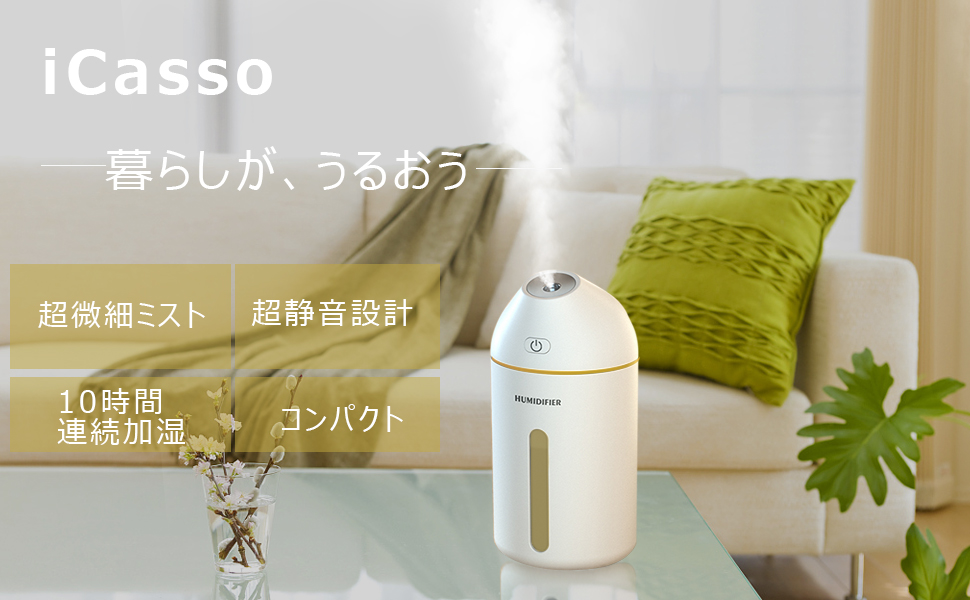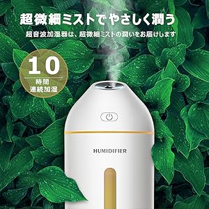 超音波の振動で超微細ミストの潤いをお届けによって、喉が潤いだけではなく、肌の保湿、目の渇きを和らげる、浮遊菌・浮遊ウイルスの抑制にも役立ちます。