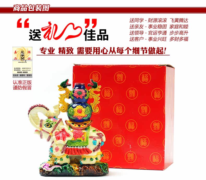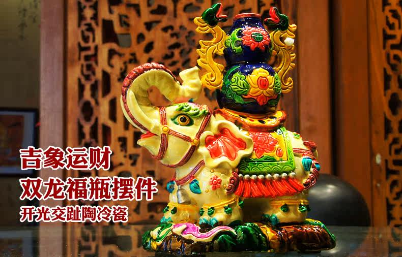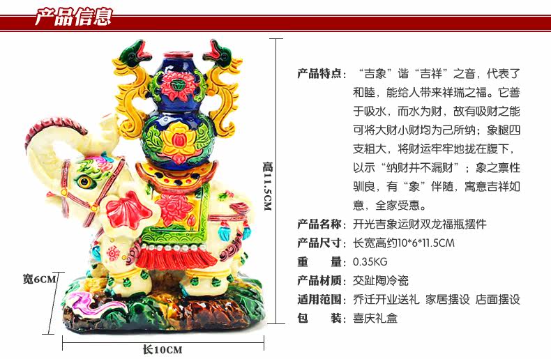 Elephant and double dragon/for car/home/gift开光交趾陶冷瓷吉象运财双龙福瓶吉祥摆件摆设