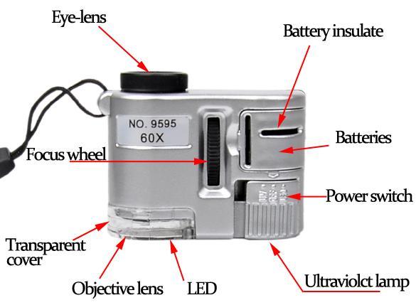 1 x Mini 60X zoom LED Lighted Pocket Microscope