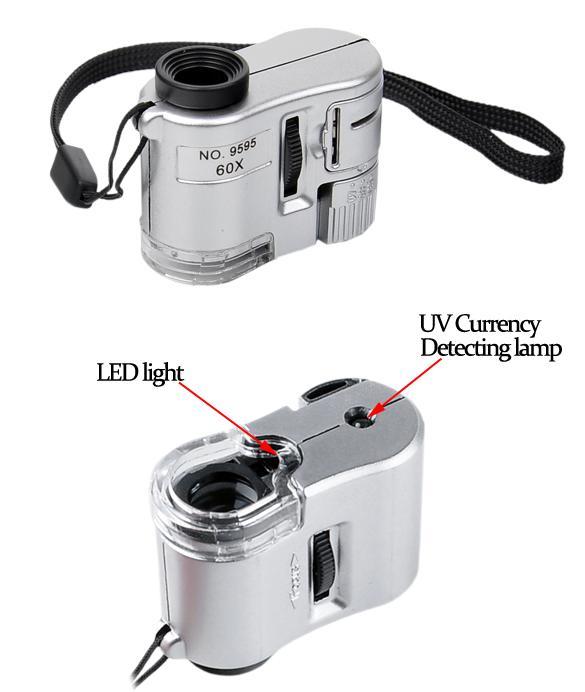 New Mini 60X Zoom LED Lighted Pocket Microscope Money/Currency Detecting