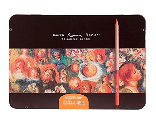-. Title : 48 Piece Classic Wooden Colored Pencils Renoir Fine Art Professional Artist Drawing Set Sketching Oily Colored pencils Color lapis de cor Painting pencil /Colored Pencil Tin Box