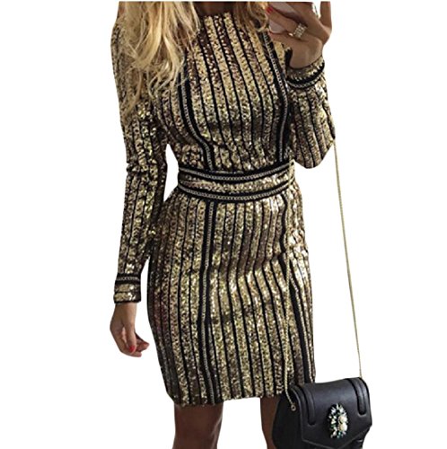 -. Title : Nicellyer 婦人用スパンコールロングスリーブスリムフィットの鉛筆のカクテルドレスを縫って
