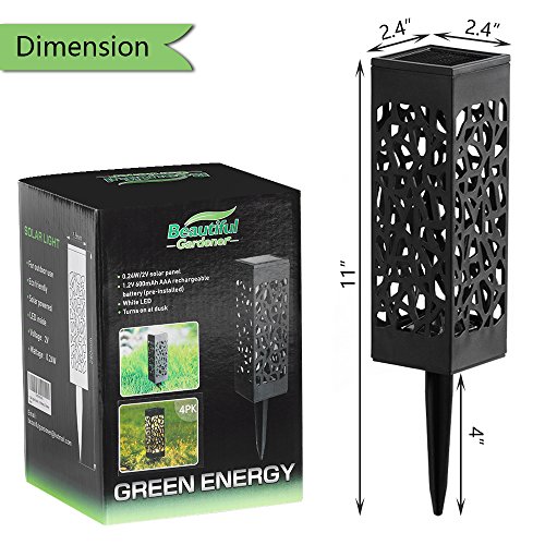 - DECORATE YOUR BEATIFUL GARDEN: Solar glow LED lights measures 11" in height x 2.4" in square, powered landscape lighting install into the ground to illuminate and landscape your outdoor pathway, walkway, driveway, sidewalk, yards, path, front gate, back yard, countryard, front porch or steps, garden.