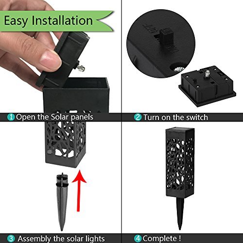 - EASY TO ASSEMBLE AND USE: No wiring or tools required to install this outdoor solar path lamp. It is easy to put in the ground since the sonar light's stake wasn't that deep. For first use easy twist off top reveals on and off switch of the solar panel. Powered path lights automatically turn on at dusk and turn off at dawn.