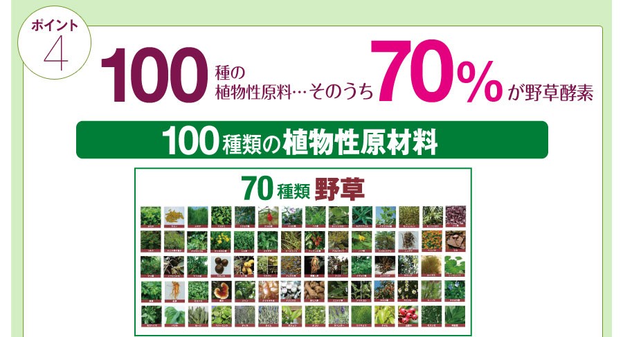 | 原材料名 | 糖類(糖蜜、黒砂糖、オリゴ糖)、野草・果物・野菜・海藻エキス、(一部にリンゴ含む) |