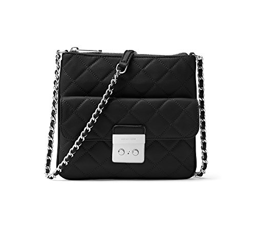 MICHAEL Michael Kors Womens Sloan Leather Quilted Crossbody Handbag Black Small