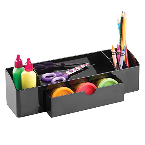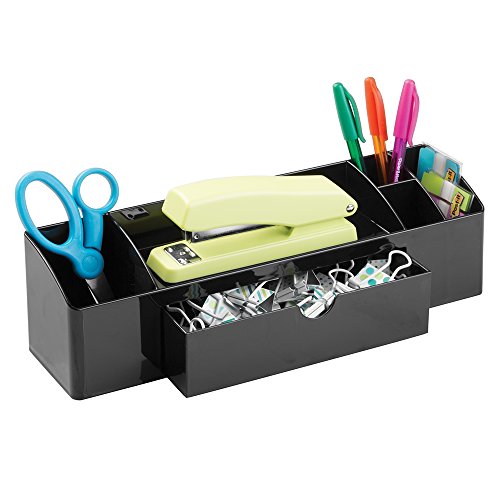 InterDesign Office Supplies Desk drawer Organizer for Pens, Paper Clips, Sticky Notes, Highlighters - black