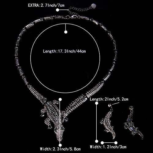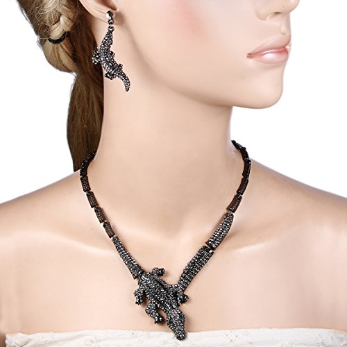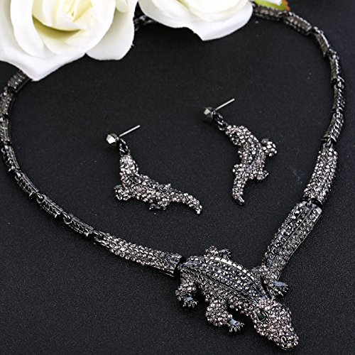 -. Title : EVER FAITH Austrian Crystal Vintage Style Crocodile Necklace Earrings Set Black Black-Tone