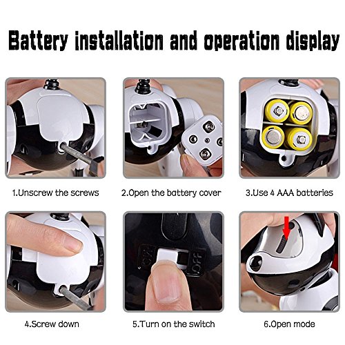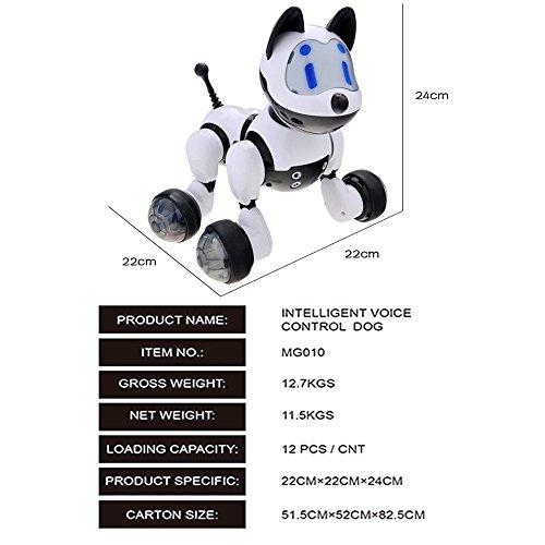 -. Feature : Robot Interactive Puppy Jenx Voice Recognition Intelligent Electronic Toy Dog The Puppy is Going to be in a New World / Puppy will trust you and you can share your stories, secrets and emotions together! he will give you his emotions as he turns green when he is down and blue when he is happy and you can always give him a big belly rub to cheer him up. / You can give him commands to dance and even sing! You can also take him for a walk as you guide him using your hand. / The Puppy can Voice Recognize 15 Instructions"Hello", "Follow Me", "Sing a Song", "Dancing", "Forward", "Backward", "Turn Left", "Turn Right","To Turn Around", "Follow Me", "Protect Me", "I Love You", "Kiss Me", "You are so Beautiful", "Tell Jokes","Go To Sleep". / Wake-up Puppy by press the puppy head, Free Demo Mode When Power Switch is Turn On, LED Eyes Will Light Up and Turn into Blue, Scoot around with Singing or Dancing. Switch to Voice Recognition Mode When press his head again. Go back to Free Demo mode if no Further Instructions and Puppy's LED Eyes will turn to Green.